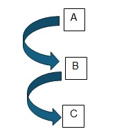 A linha de parentesco identifica a vinculação da pessoa a partir de um ascendente comum sendo em linha reta parentes que descendem uns dos outros. No exemplo, a linha reta é descente parte-se do pai (A), frente ao filho (B) e ao neto (C):