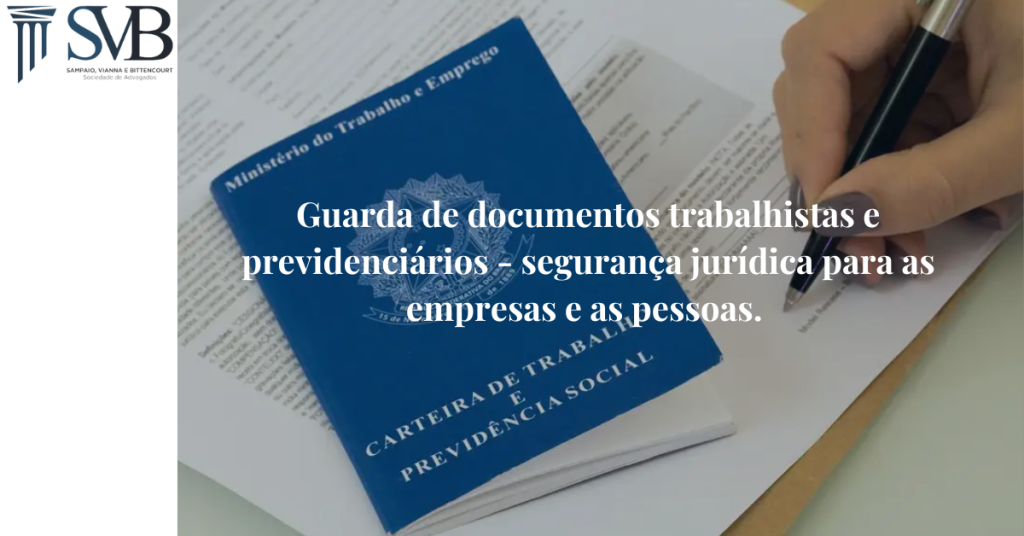 O prazo de guarda de documentos está relacionado ao prazo legal para fins de constituição de créditos e eventuais ações judiciais.